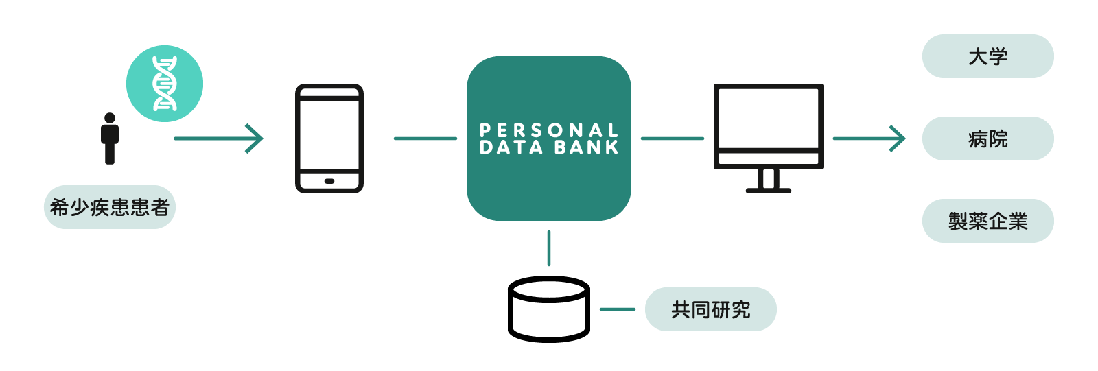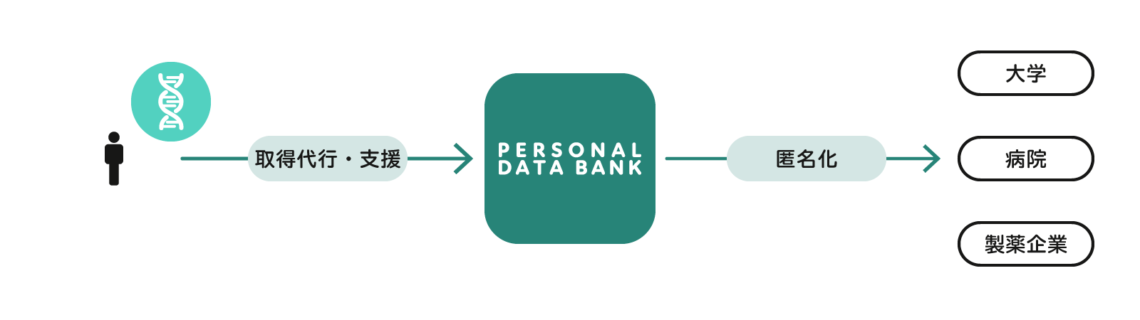 大学、病院、製薬企業に代わって患者様ご本人から全ゲノム情報の取得・管理を代行または支援します。